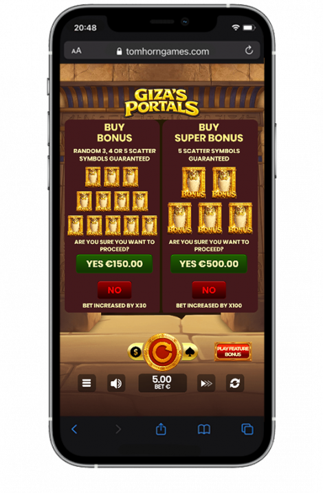 By clicking the BUY BONUS button, there are two options to buy: BUY BONUS or BUY SUPER BONUS. By buying, the particular bonus in the next round is guaranteed. BUY BONUS can be purchased for x30 the current bet, and BUY SUPER BONUS for x100 the current bet.