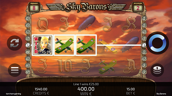 By obtaining at least three Ace Pilot Scatters, 12 Free Spins are triggered. In Free Spins the Medal of Honour increases a multiplier that can reach up to 13x the total bet.