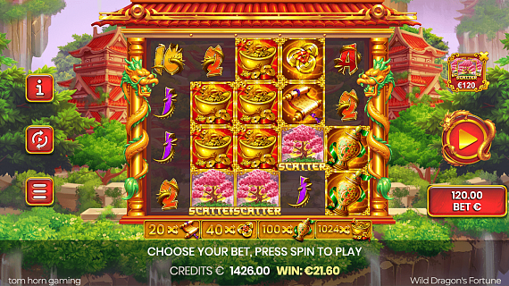 There are 4 GIFTS OF FORTUNE symbols in the game. They are high symbols. The player can adjust the number of GIFTS OF FORTUNE symbols, thus increasing the payout of related symbols as well as the amount of winlines/ways, and unlocking DRAGON WILDS with higher MULTIPLIERs. The player’s total bet depends on the number of GIFTS OF FORTUNE symbols.